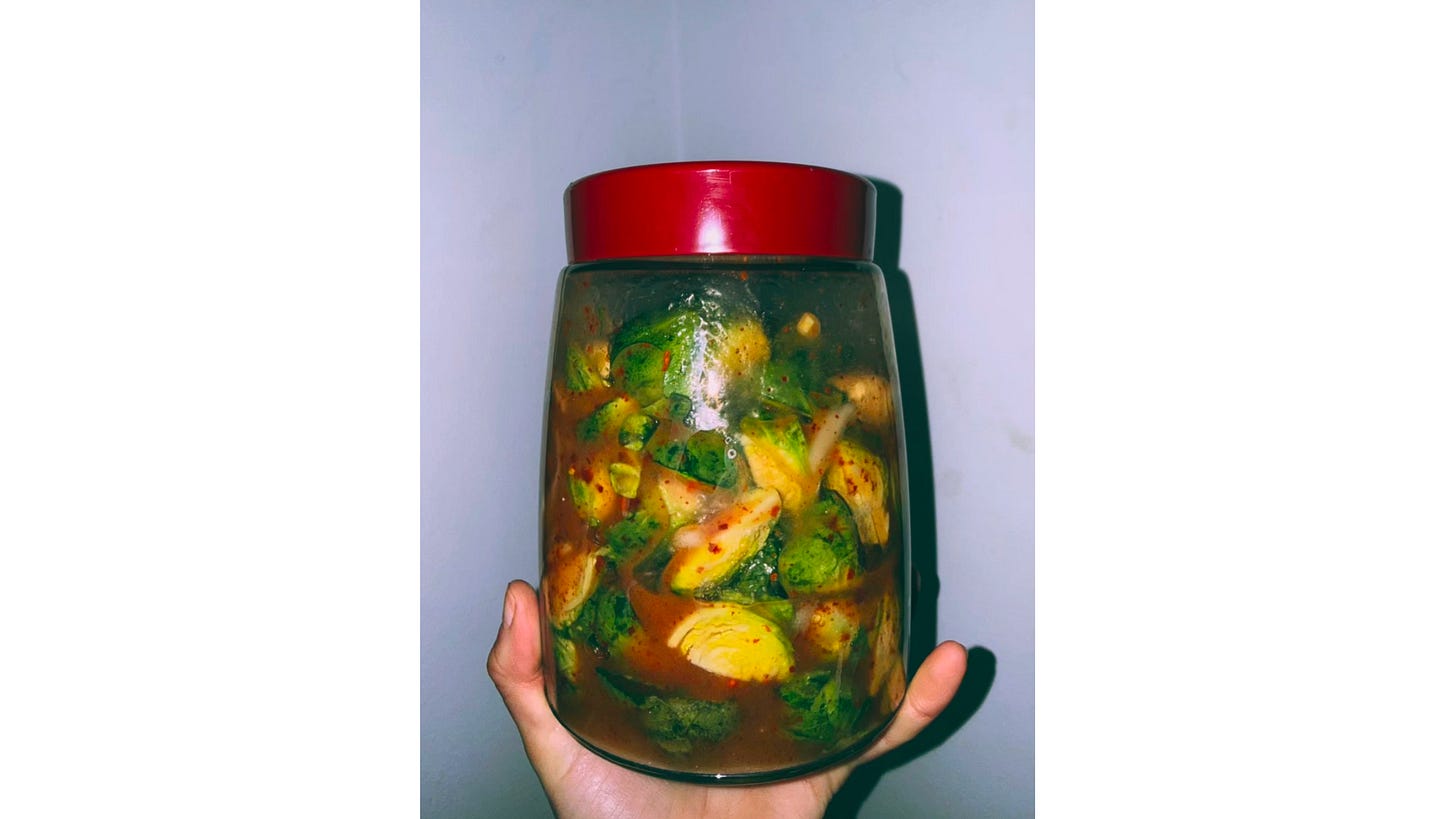 Pour the cooled liquid over the sprouts. They must be fully covered: shake the jar so pieces settle tightly. If not covered, add water.